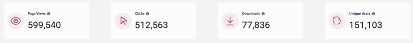 In this section, you can view your Page Views, Clicks, Downloads, and Unique Users within a fully customizable date range.