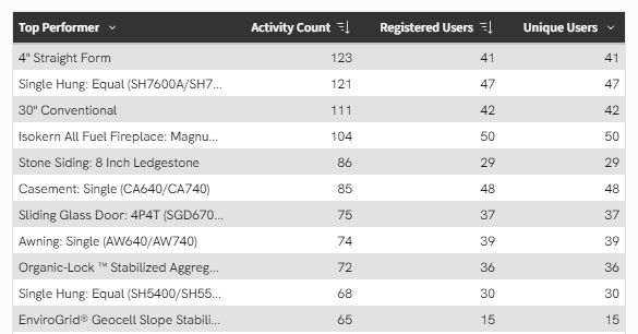 Example of your data in action: With a better understanding of the professions of users interacting with your Design Hub, your marketing team can craft targeted, personalized content for them. Meanwhile, your sales team can target the top 15 most active design firms with a higher chance of success since they’ve already expressed interest in your products.